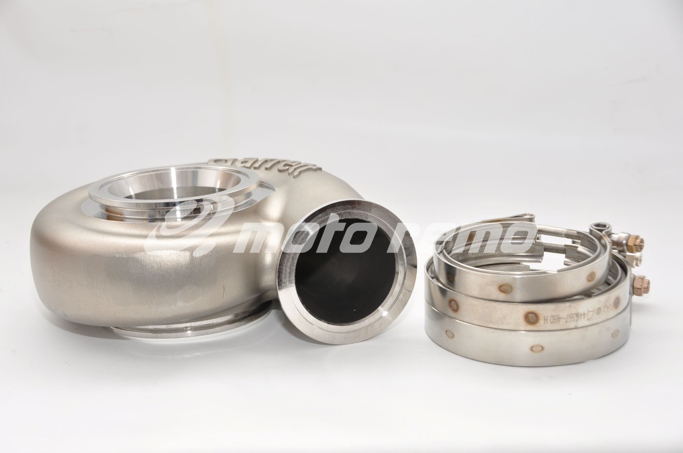 Stainless Steel, TRIM 65 A/R 1.28, Wlot V-band, Wylot V-band, swobodny przepływ, opaski dołączone.